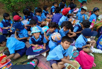 After reaching the park, the students were asked to have their snacks. They shared their snacks and spent some time talking to each other.