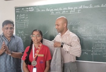 For her Asia Book of Records achievement, she was felicitated in the presence of her classmates, teacher and Academic Head by the Founder and Chairman of Little Angels School - Shri. M. Venumohan and Director Shri Kranti Kiran.