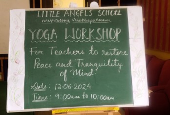 A training program on the topic – ‘YOGA TO RESTORE PEACE AND TRANQUILITY OF MIND’ was conducted in the school auditorium by PET and Yoga Teacher Ms. P.P.S Madhuri. This workshop was specifically designed to teach teachers how to use Yoga Stretches, OM chanting, Meditation, and Pranayama to help students relax and rejuvenate.