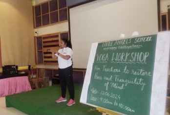 In today’s session, teachers were given tips on how to use yoga to help students focus in the classroom and to concentrate in studies, reduce tension, anxiety, and fear. Around 90 teachers attended the session today and expressed their gratitude for the training and shared positive feedback. This session is beneficial to teachers as well as students, as it will assist them in focusing their energy for both physical and mental relaxation.