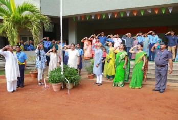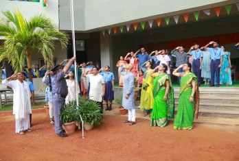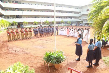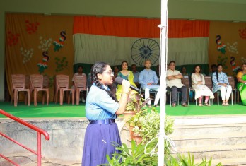 The celebration began with the hoisting of the National Flag by the student Chief Guests BLV. Pragnya and MV Sonalika Reddy followed by the rendition of the national anthem by the school choir, filling the air with Patriotic fervour.