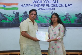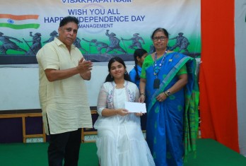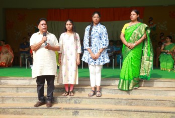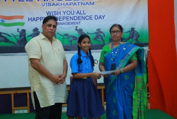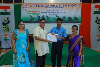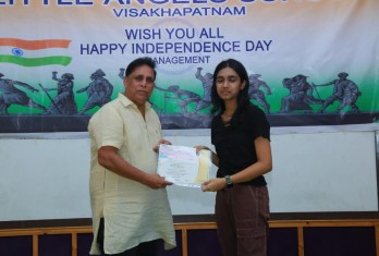 A.Yaga Priya , music prodigy and the 2nd Runner up of Padutga Theeyaga program was felicitated by the school management for all the accolades won and has been receiving in her music journey. The senior most Social Science teacher Smt. Lakshmi Rajyam madam appreciated and announced a cash award of ?1116 each to the melody queens of Little Angels A.Yagapriya, E. Prakrithi and Ayyan Pranathi for their notable journey in their desired field of music. Ayyan Pranathi took the stage to present a melodious song which spread the air with patriotism and left the audience with delight and happiness.