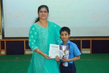 The Blue House Prize Distribution program for the students from LKG to Class 3 was held on 23.08.2024. It was a grand and memorable event, marked by enthusiasm and joy. The program commenced with a warm and gracious welcome speech. This was followed by a soothing prayer song that invoked a sense of peace and reverence among all present in the occasion.