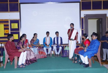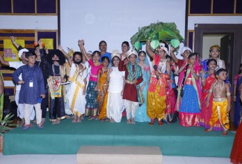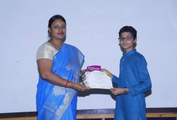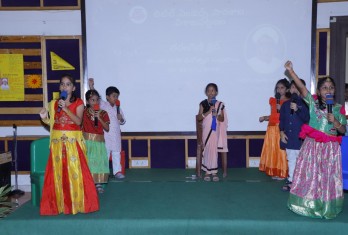 The celebrations started with the offering of floral tributes to Lord Ganesha and Telugu Talli Idol followed by a welcome dance by the students of secondary school. A play was enacted highlighting the importance of Telugu language which showcased students’ oratory skills and confidence in dialogue delivery. A skit on the benefits of water conservation was well depicted by the students of classes 6 and 7. A skit on the famous incidents in the life of Lord Krishna was presented by the students of classes 4 and 5 which was very enchanting and mesmerising. Ashtaavadhana presented by the students of secondary school was well appreciated by the audience.The winners of the various competitions, conducted by Tarangini Club were awarded by the Principal and the Headmistress.