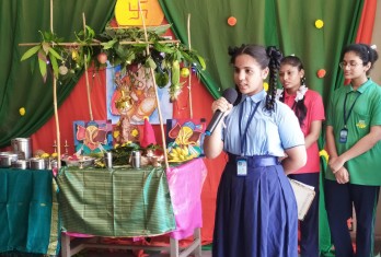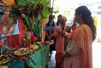 The students showcased their talent through cultural performances, including devotional singing and reading articles on the importance of eco-friendly Vinayaka, idol and Patri Puja thereby highlighting the underlying benefits of the medicinal leaves involved in it.
