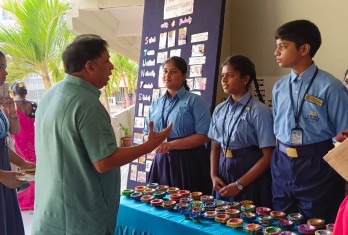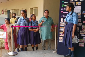 The Honourable Chairman Shri M. Venumohan, extended the privilege of performing the inauguration to the top contributor from previous years' exhibition with the highest sales and this year the credit was given to Poorvi Rajak of 9-A.
