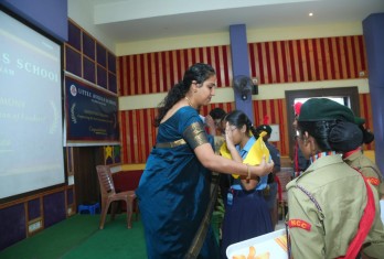 The programme started with a welcome speech and a formal welcome of the Directors Mr. M. Kranti Kiran and Mrs. Ch. Swathi by presenting a rose bud by the NCC Cadet. A rose bud was also presented to the Principal Mrs. Indumalini. The blessings of God were invoked when the school choir rendered a prayer song.