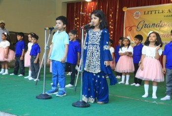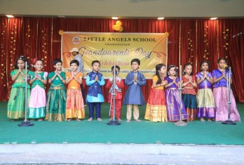 The students of LKG and UKG presented a scintillating array of performances which were enjoyed by everyone present. One of the highlights of the celebration was the fun activities where grandparents actively participated with great zeal.