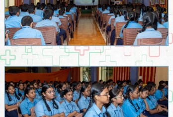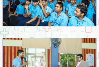 Dr. Rahul Kumar Bafna was felicitated by the Founder & Chairman, Shri M. Venumohan Garu, in recognition of his service and dedication to healthcare. In his insightful address, Dr. Bafna emphasized the importance of eye care and shared valuable healthcare practices. His engaging interaction encouraged students to ask questions and learn from his rich experiences.