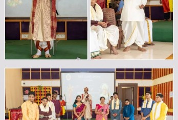 The programme commenced with vedic chanting and prayer, invoking divine blessings, followed by a graceful welcome dance – “Alokaye Sri Balakrishnam”presented by the students.