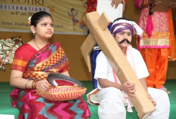 Sankranti and Lohri, the harvest festivals of Andhra Pradesh and Punjab imbibed exuberance and fanfare. Everyone were totally engrossed in the festive spirit. The celebration started with prayers and songs which immersed the audience into rich cultural folklore. Children had energetic time as they danced around the holy bonfire and offered prayers for prosperity of the nation. Foot tapping dance performances were given by the students representing rich folklore. A sky touching fun with kite flying, filled everyone with joy, thrill and inspiration. The students compered the programme to spread awareness about the festivals. Haridasu, Gangiredhu, Bhogipallu, Gobbemmalu and Bommala Koluvu, Phulkari, 5 Ks, Charkha were the rich ethnic culture which fills one’s heart with pride for being an Andhra and a Punjabi respectively.