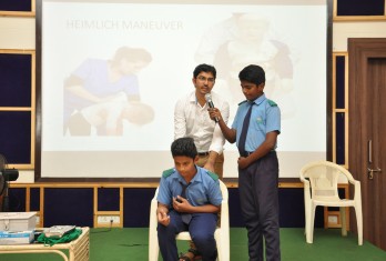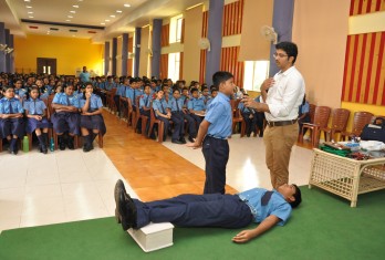 Children from classes 6th to 10th were addressed and they were given tips on the preventive measures and steps to be taken in case of an injury, fracture, cut or in other emergency cases. He also gave tips to handle students with Asthama and Seizures problem. The entire session was interactive as well as informative and all the queries of the children were answered by the doctor.