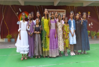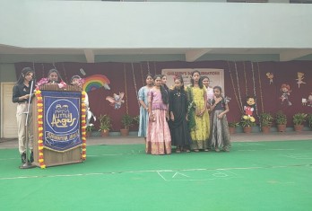 The stage came alive with a series of captivating cultural performances. The tiny - tots of kindergarten charmed the audience with a delightful dance titled “we are dreamers”. This was followed by a melodious song in Hindi, that resonated with the spirit of childhood. The students of classes 1 to 3 showcased their talent through a vibrant “Rainbow Dance” filling the stage with the colour and energy. The secondary girls presented a meaningful skit on childhood titled “Bachpan”. The skit beautifully portrayed the innocence and joy of childhood. The secondary boys presented a dynamic fusion dance adding an energetic flavour to the celebration.