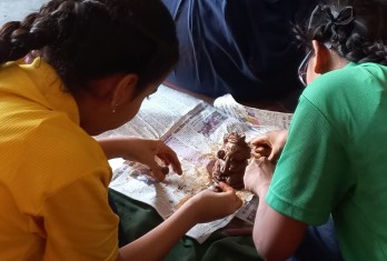 The objective of the workshop is to instill a sense of environmental responsibility among students and educate them to celebrate the festival in a sustainable manner and avoid harming the environment by using idols made of plaster of paris. Students were told to adopt more eco-friendly practices, such as making their own idols using mud clay, turmeric, or flour.