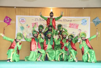 Sankranti and Lohri, the harvest festivals of Andhra Pradesh and Punjab imbibed exuberance and fanfare. Everyone were totally engrossed in the festive spirit. The celebration started with prayers and songs which immersed the audience into rich cultural folklore. Children had energetic time as they danced around the holy bonfire and offered prayers for prosperity of the nation. Foot tapping dance performances were given by the students representing rich folklore. A sky touching fun with kite flying, filled everyone with joy, thrill and inspiration. The students compered the programme to spread awareness about the festivals. Haridasu, Gangiredhu, Bhogipallu, Gobbemmalu and Bommala Koluvu, Phulkari, 5 Ks, Charkha were the rich ethnic culture which fills one’s heart with pride for being an Andhra and a Punjabi respectively.